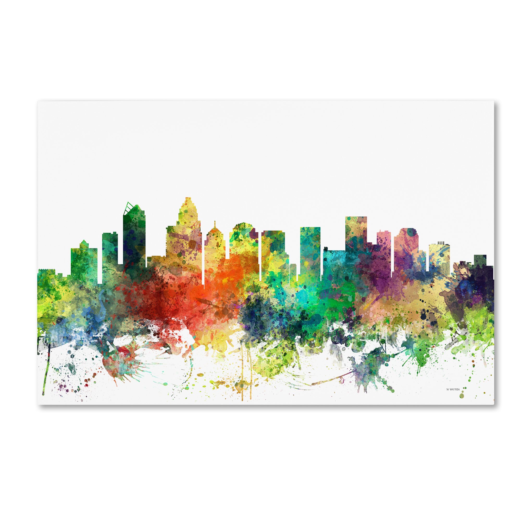 Amazon Com Charlotte Nc Skyline Sp By Marlene Watson 30x47 Inch Canvas Wall Art Posters Prints
